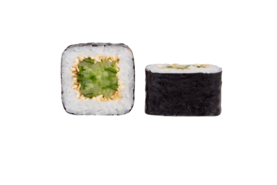 Лист салата, рис для суши, соус "Фирменный", крем-краб, свежие огурцы, такуан, лук сушенный